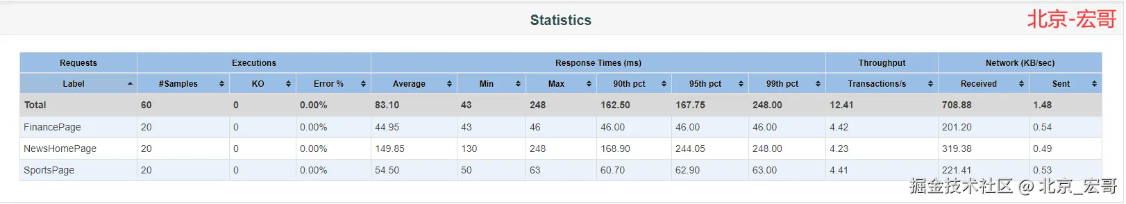 统计表在一个表中提供每个事务的所有指标的摘要,包括3个可配置的百分位数。Statistics: 数据分析,基本将 Summary Report 和 Aggrerate Report 的结果合并。