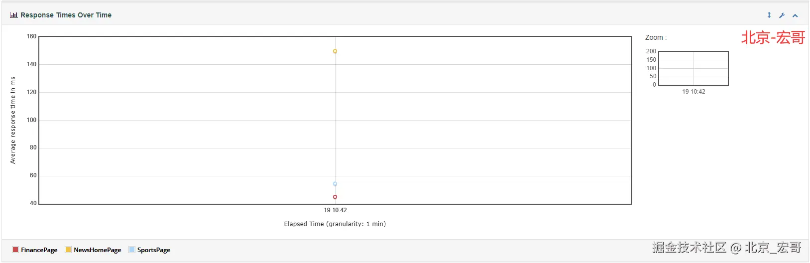 Charts里如图所示分为三大块:时间维度信息(Over Time)、吞吐量(Thorughput)、响应时间(Response Times)
