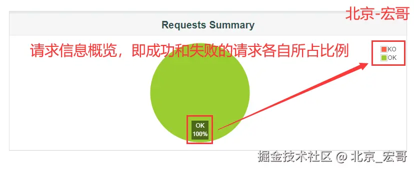 Requests Summary: 请求的通过率(OK)与失败率(KO),百分比显示。