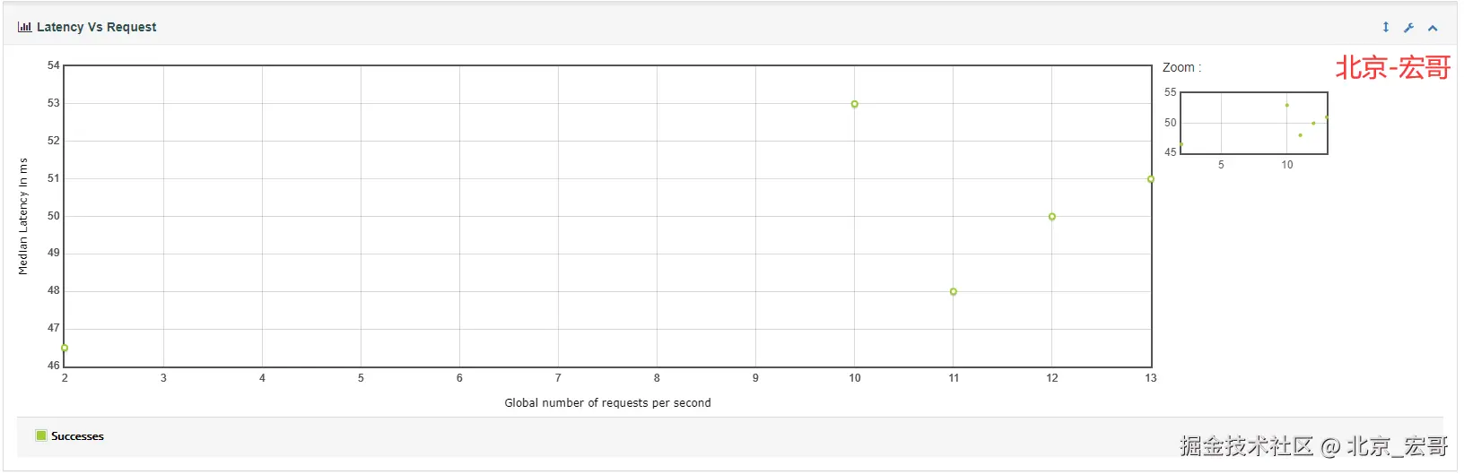 ⑥、Latency Vs Request 延迟时间中值与每秒请求数关系曲线