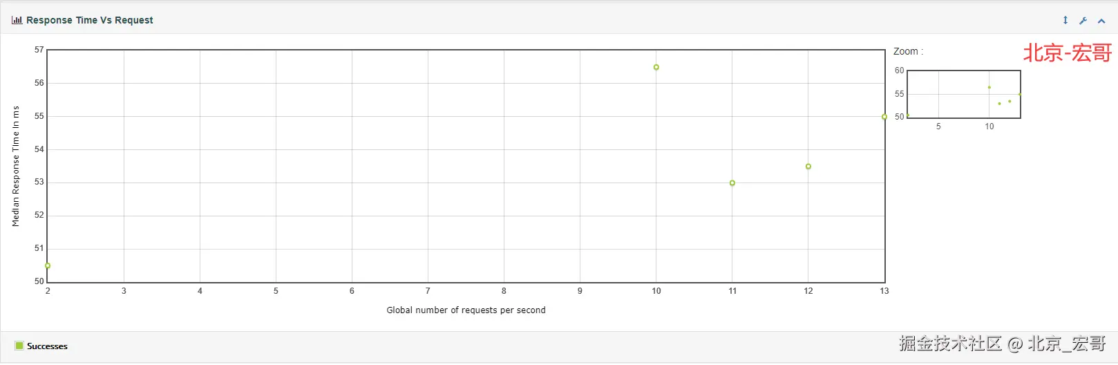 ⑤、 Response Time Vs Request 响应时间中值与每秒请求数关系曲线