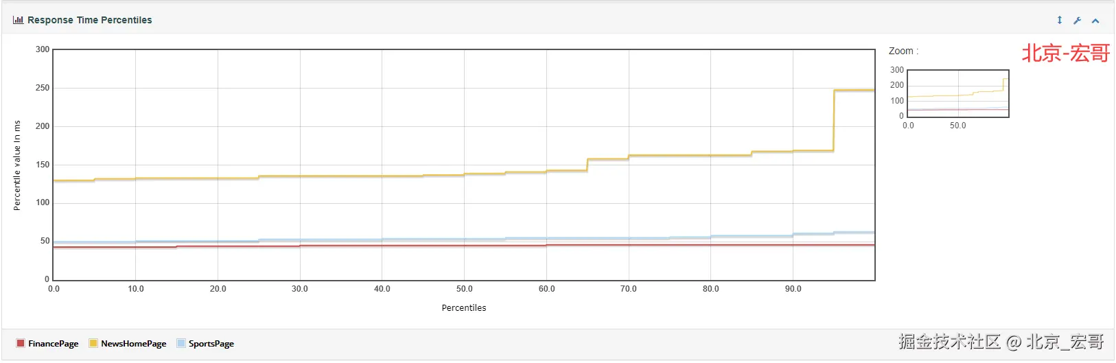 ①、 Response Time Percentiles(响应时间百分比分布曲线图)