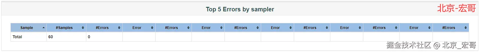 前5个错误(按Sampler列出)表为每个Sampler(默认情况下不包括Transaction Controller)提供前5个错误:Top 5 Errors by sampler:Top5错误信息采样