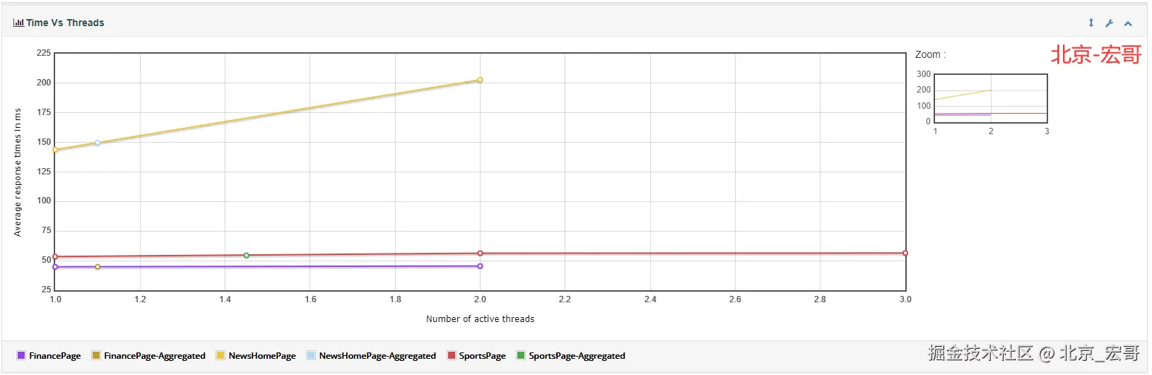 ③、Time Vs Threads(平均响应时间和线程数的对应变化曲线)