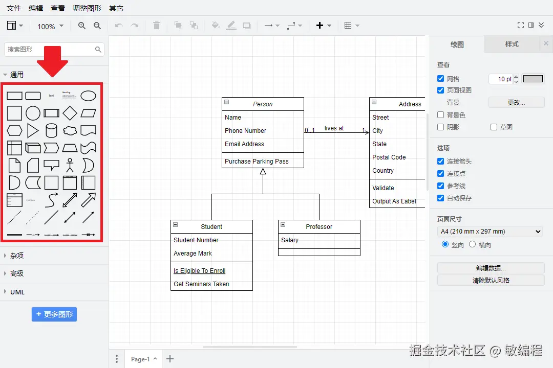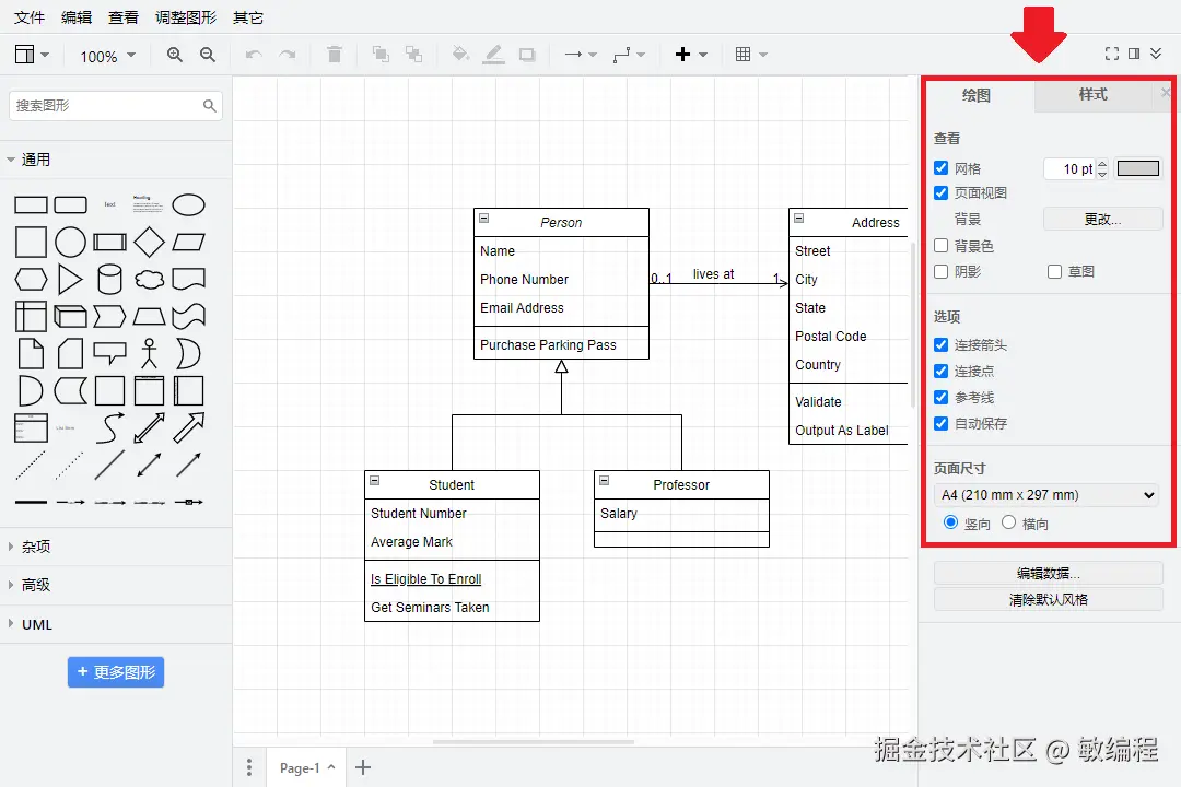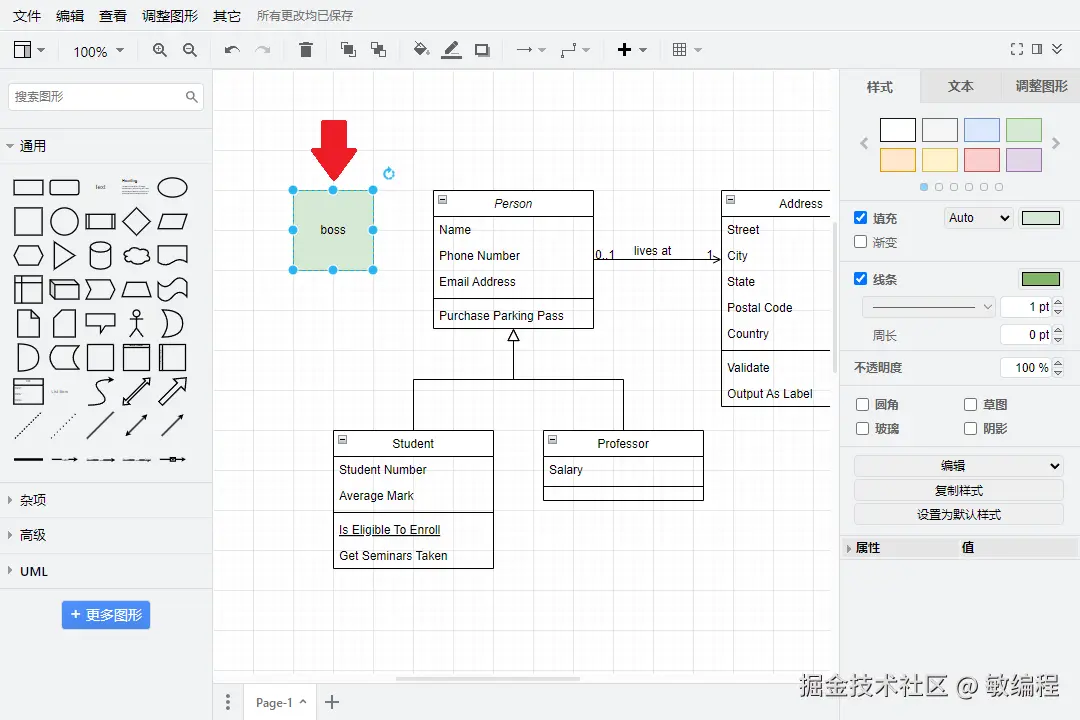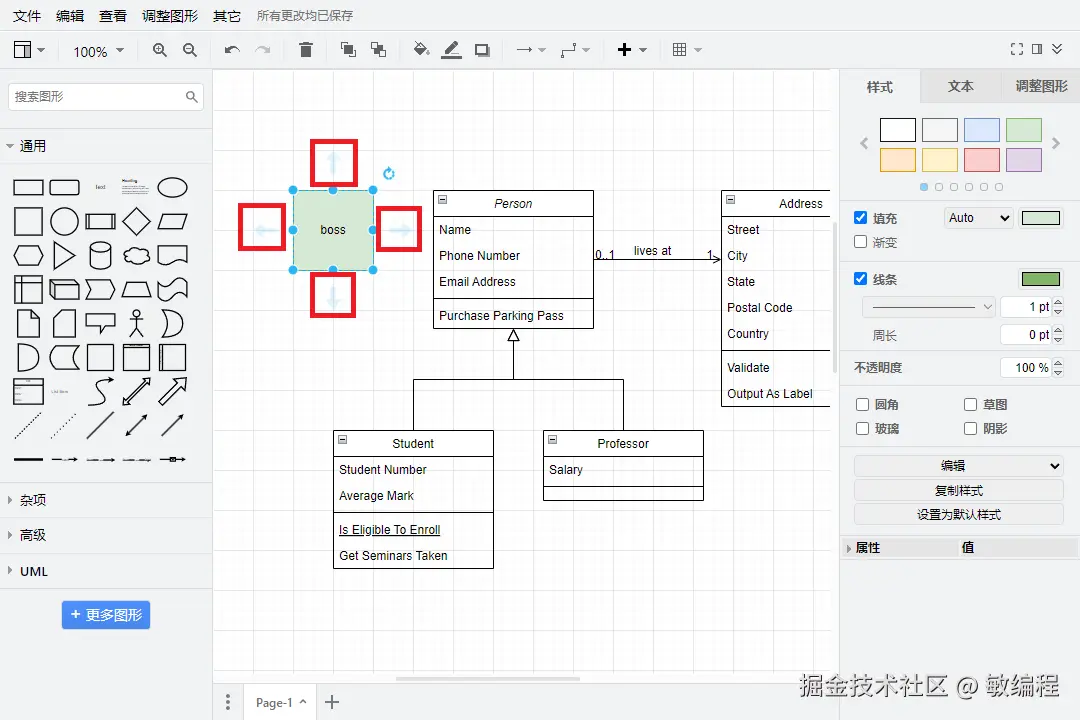 此时,中文drawio 会重新选中该图形,右侧面板也会切换为图形的属性面板。