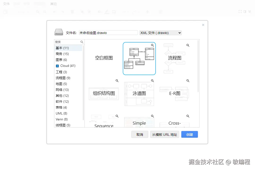 在本例中,我们选择了【基本】分类下的第2个业务模板【类图】,确认无误后,点击【创建】按钮即可完成模板创建。
