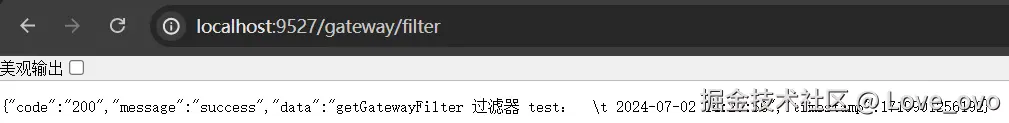进行测试:访问:http://localhost:9527/pay/gateway/filter,测试结果如下: