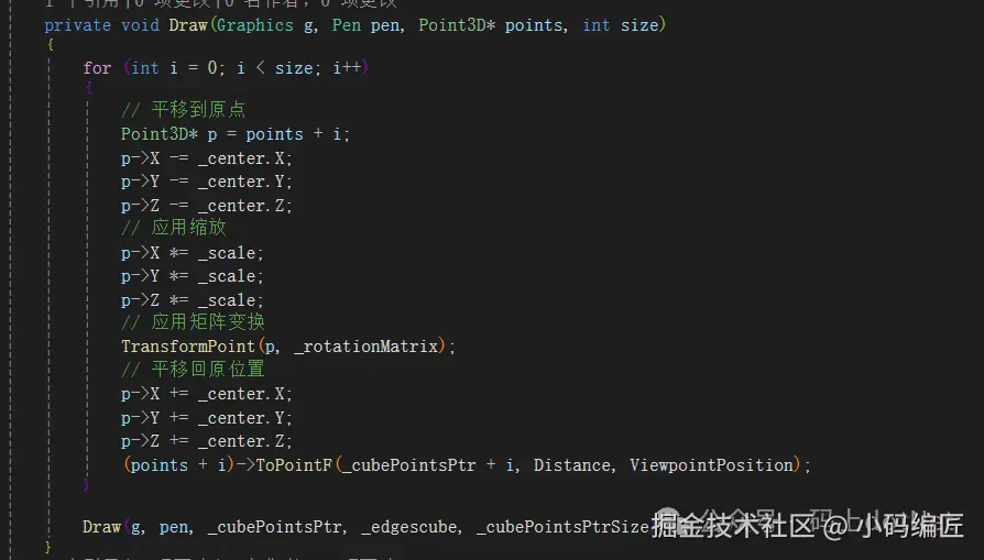 第二个Draw函数比较复杂,应用缩放、旋转、3D转2D坐标: