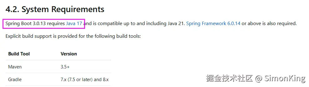 SpringBoot3.x 最新稳定版为3.0.13,最低要求JDK17。