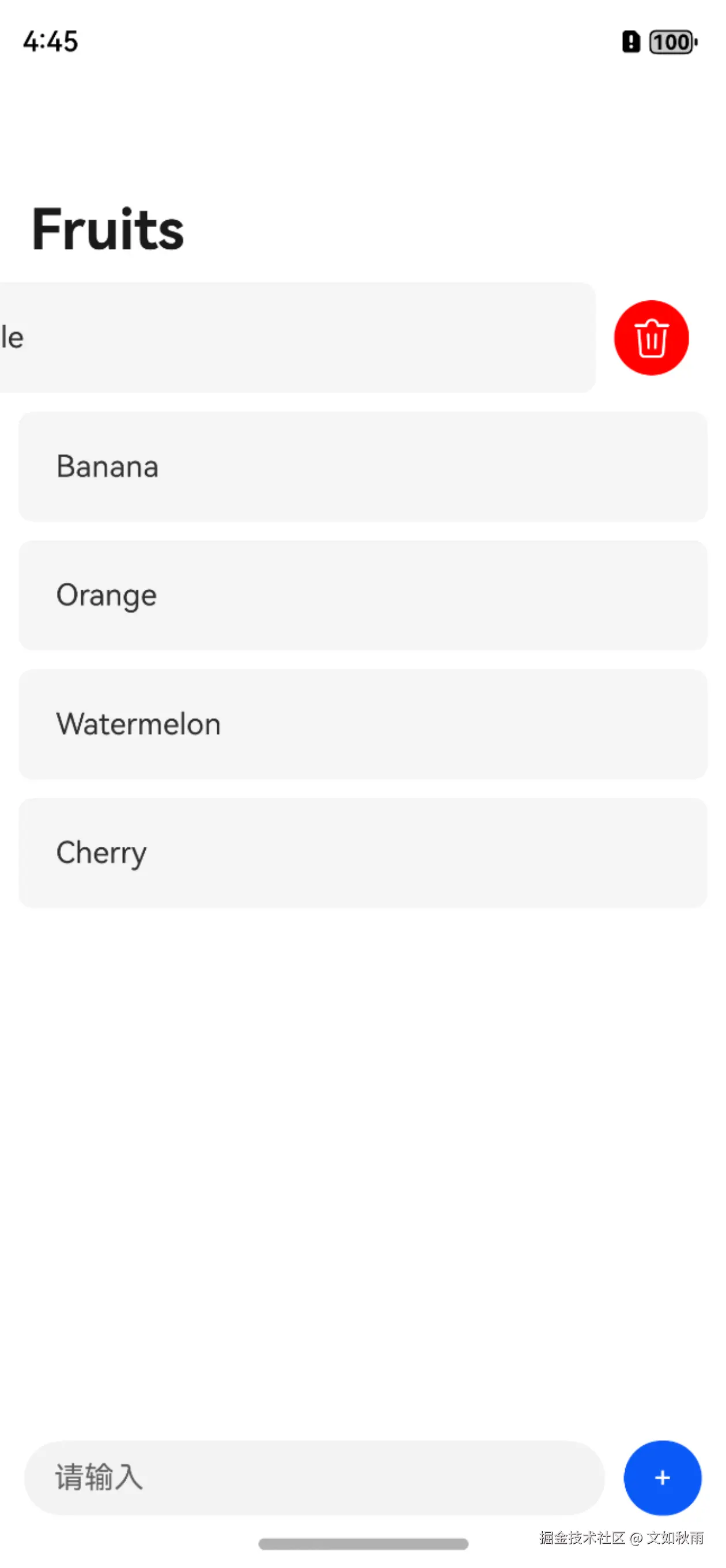将filteredFruits()函数替换 List 组件中ForEach()函数遍历的数组fruits,代码如下: