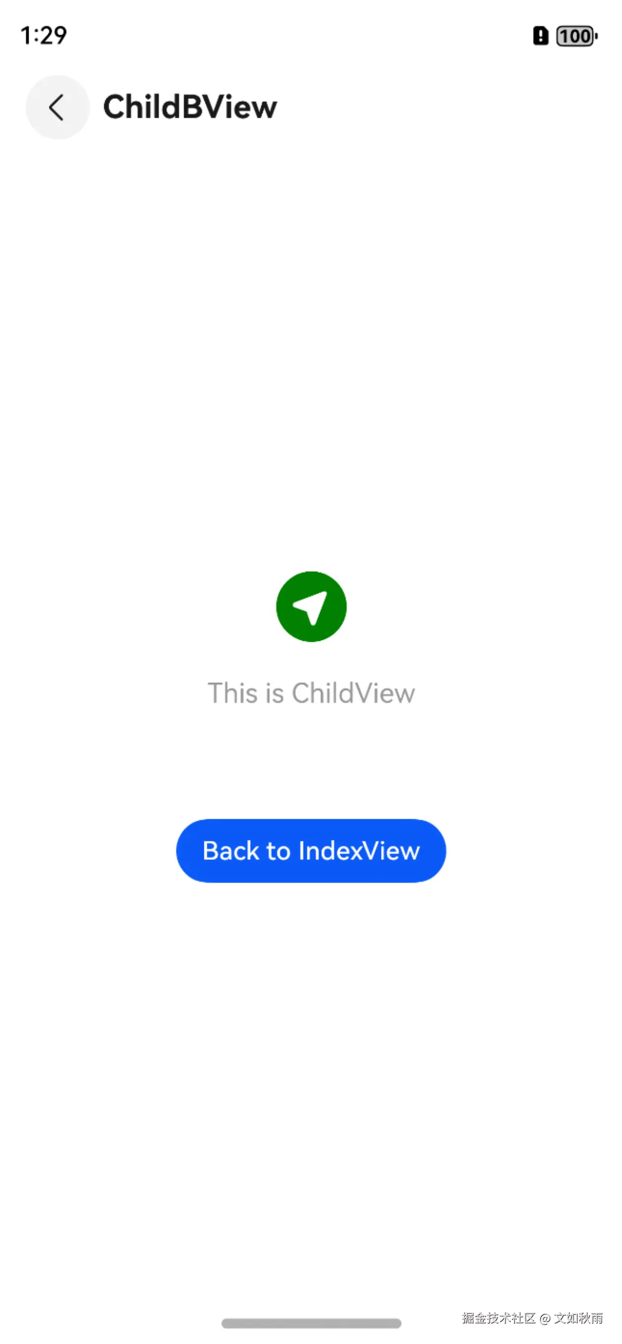 当开发者点击Show ChildBView 按钮时,系统将会跳转到ChildBView 页面,如图 7-2 所示。