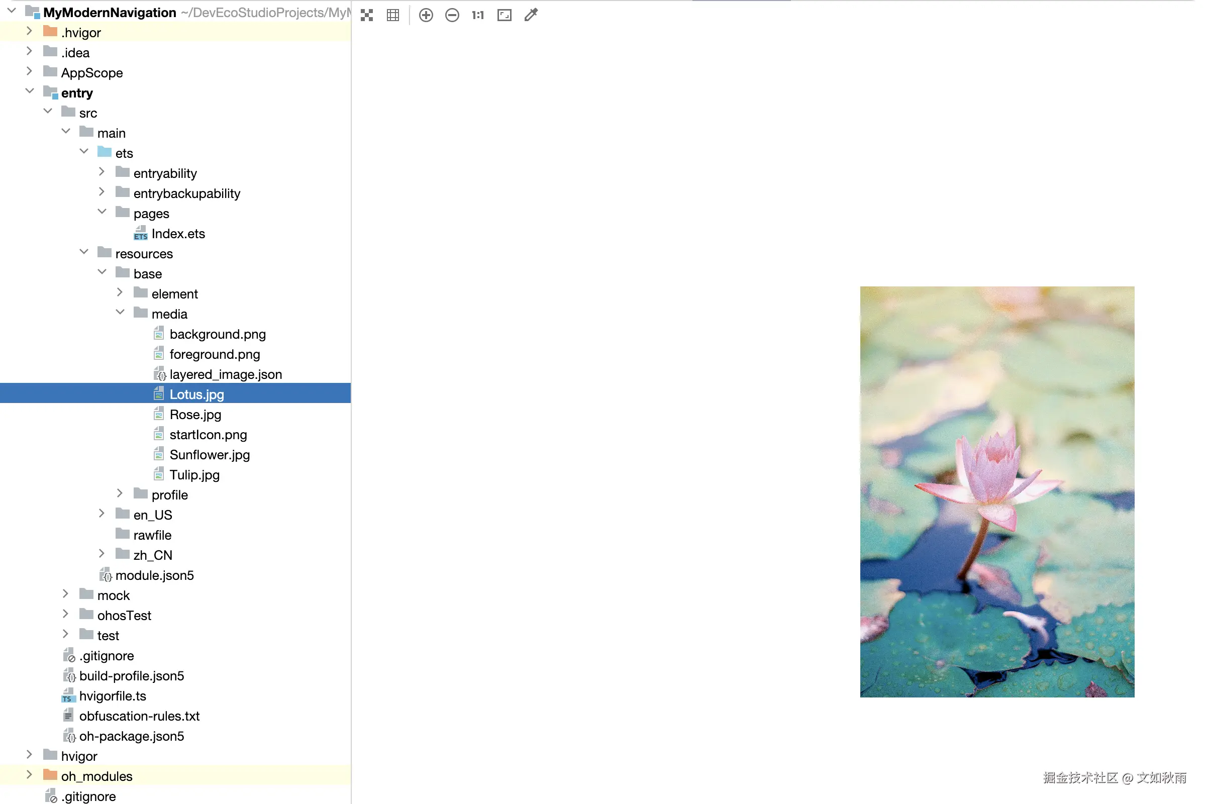 创建一个名为MyModernNavigation的新的 HarmonyOS 项目,并打开工程开发面板。