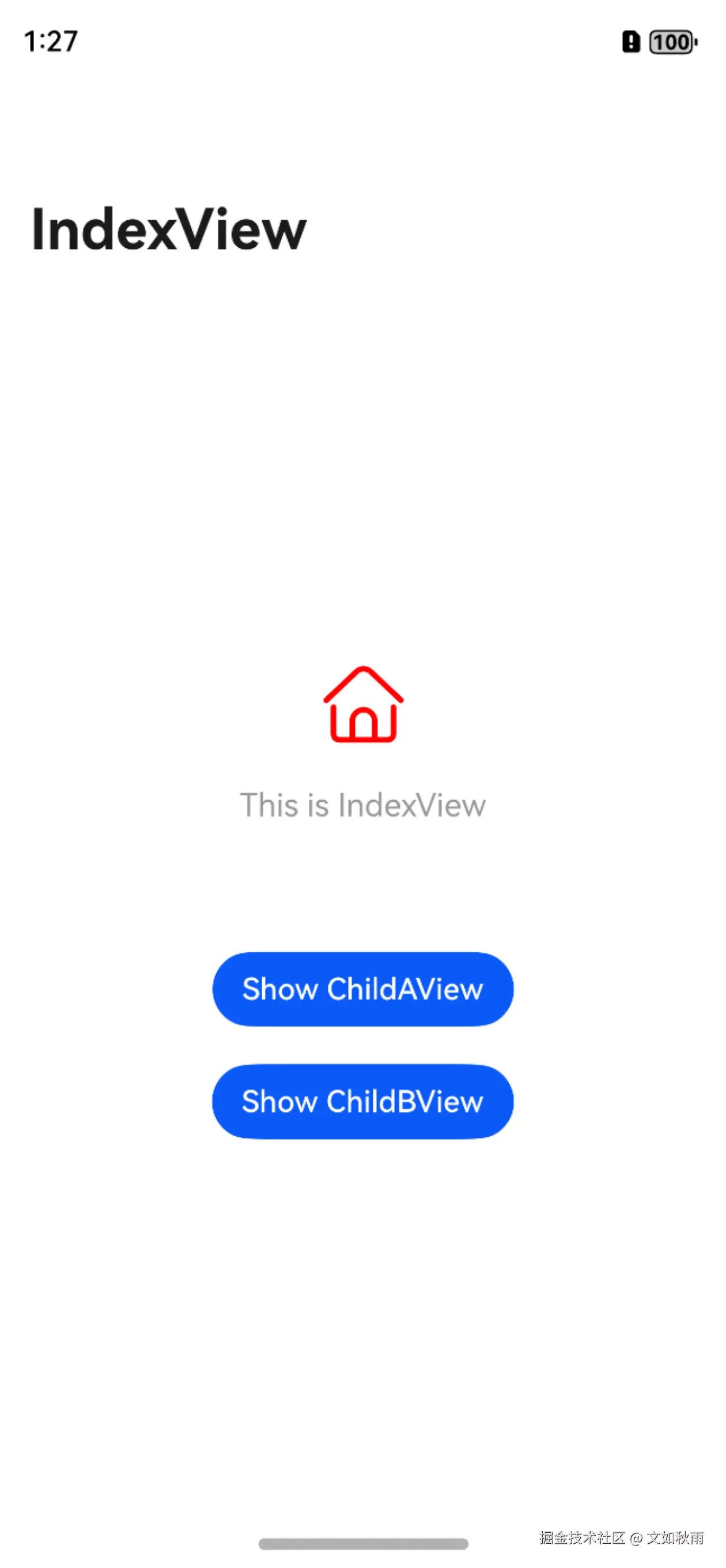 Index 组件作为应用的主页面组件,通过@Provide 装饰器声明 pageStack 导航堆栈,用于后续页面之间的导航路径管理。在 UI 交互上,定义两个按钮并绑定了点击事件,分别将 ChildAView与ChildBView路径压入导航栈中,来实现跳转逻辑。