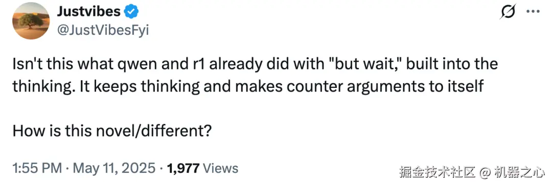 再比如,CoRT 不就是 Qwen 和 R1 中的「but wait」模式吗?模型一直思考,并自我反驳,两者似乎没有什么不同。