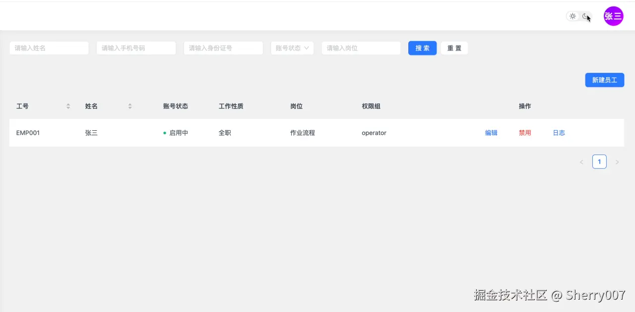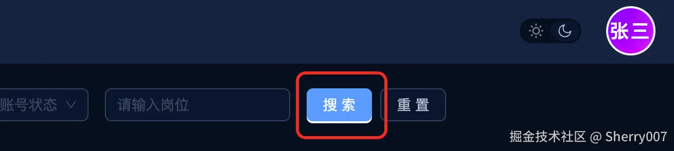 接下来就是一些细节问题了,我们目前配置了大方向的主题,包括主色,背景色,文字色,但是可能有一些组件属性,比如 box-shadow,他跟我们的主色并不相配,如下图所示,我们发现在暗黑模式下的按钮显示有问题