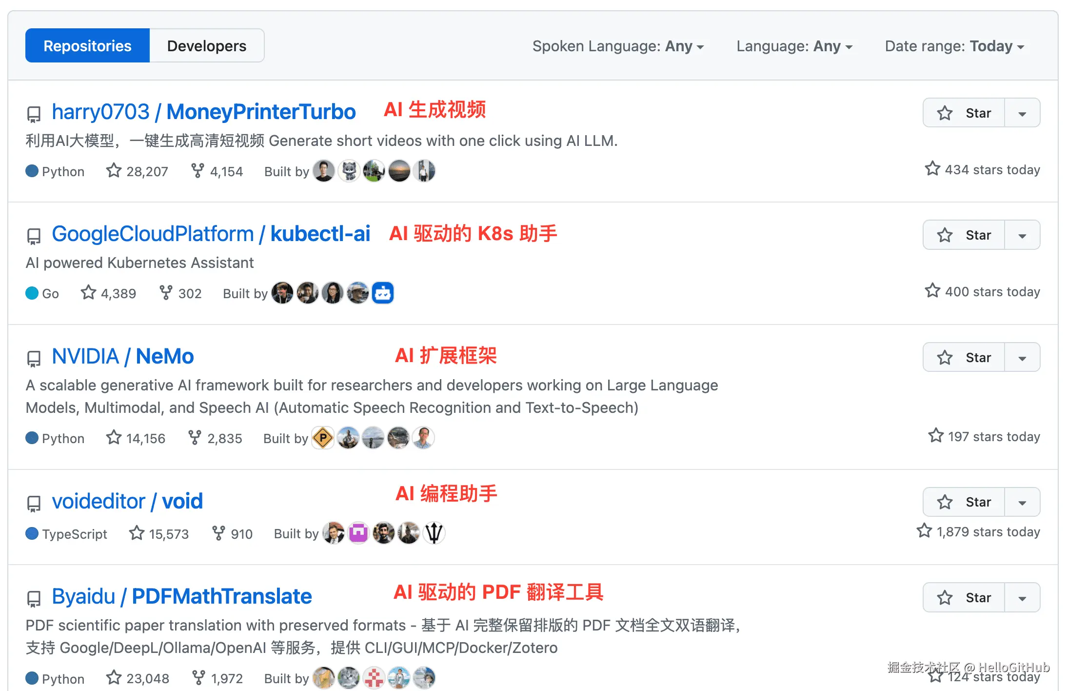 随便打开这几天的 GitHub 热榜看看,AI 相关的项目,无论是 AI 模型、开发框架,还是各种有趣的 AI 应用,霸榜简直成了常态。