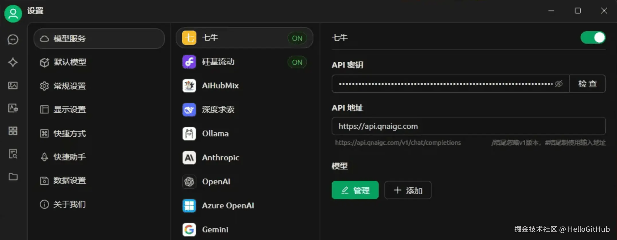 即使你目前对 AI 不太熟悉,或者只是想快速体验 AI 大模型的能力,也可以轻松上手。许多优秀的开源 LLM 桌面客户端,比如 Cherry Studio、NextChat 等,提供容易上手的界面。它们支持配置自定义的 API 接口,结合七牛云提供的 AI 大模型推理服务免费额度,无需复杂配置,即可轻松体验多种主流大模型。