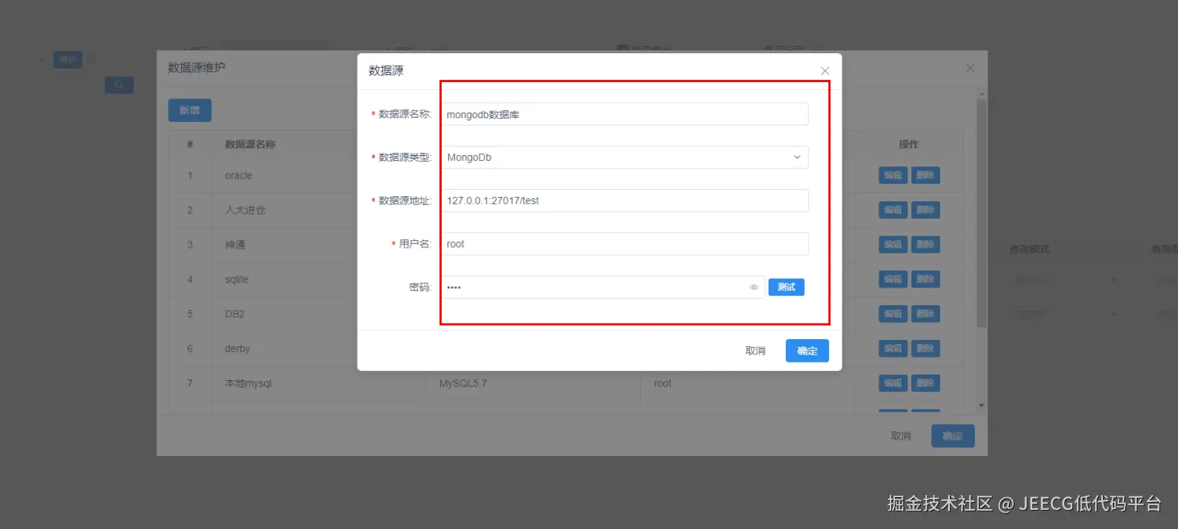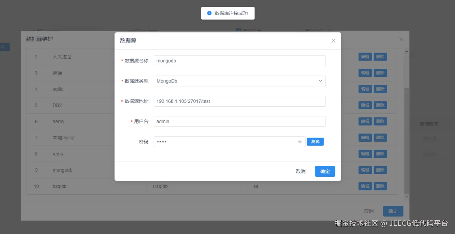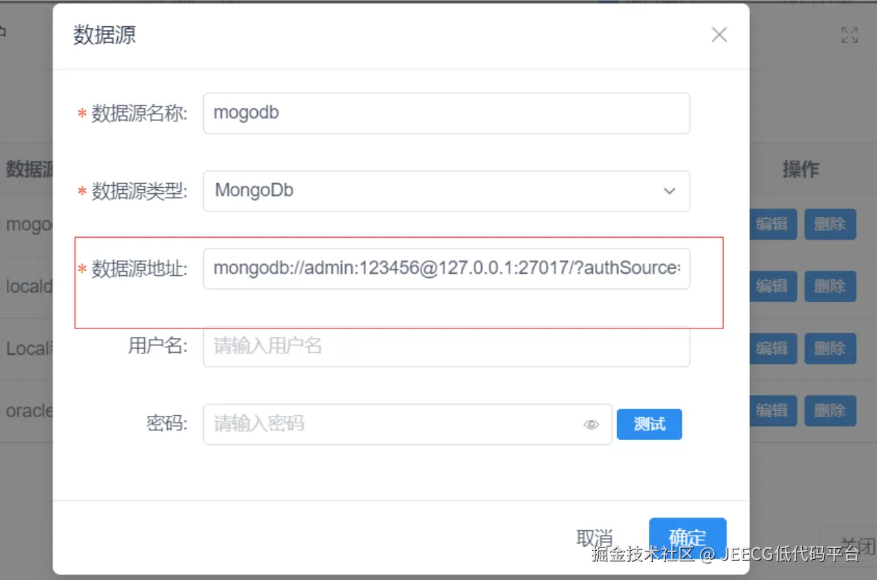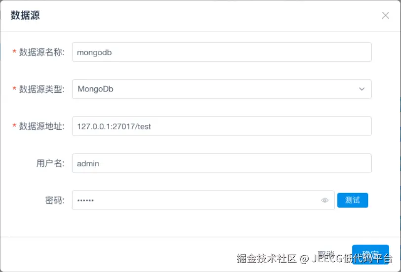 在数据源维护中添加mongodb数据源