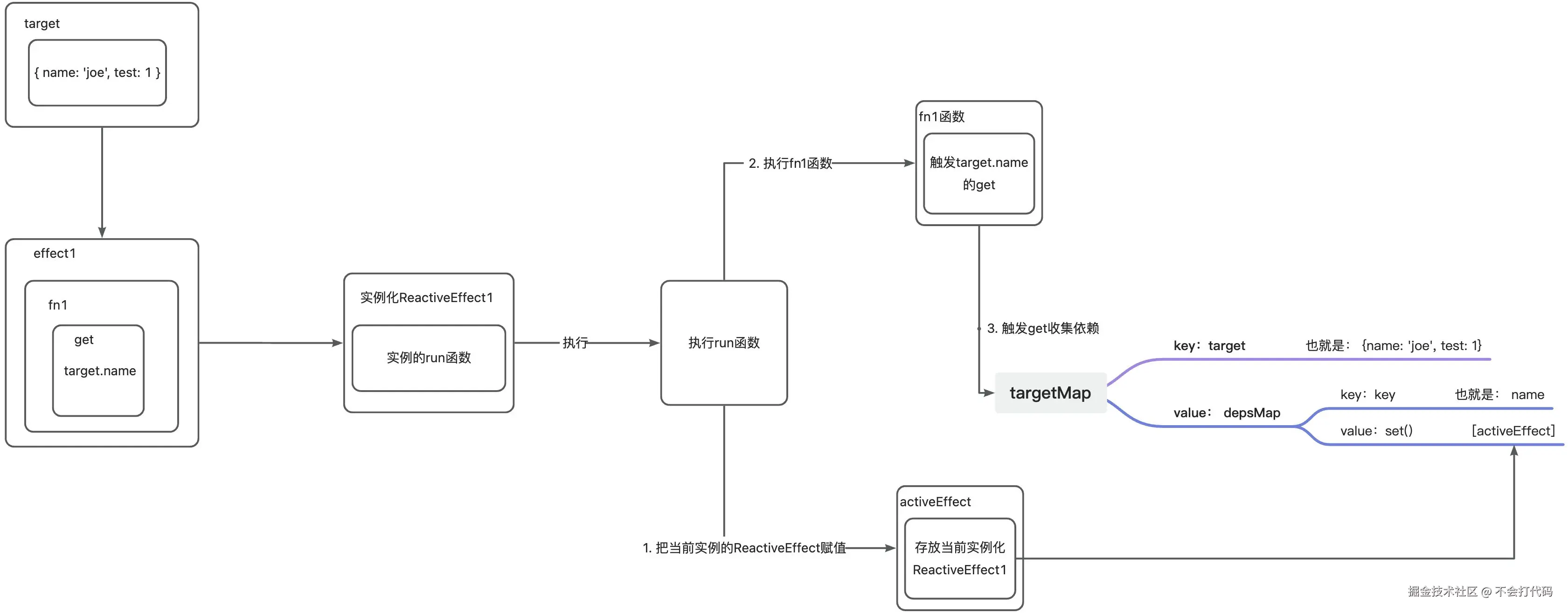 - 然后执行run,收集依赖