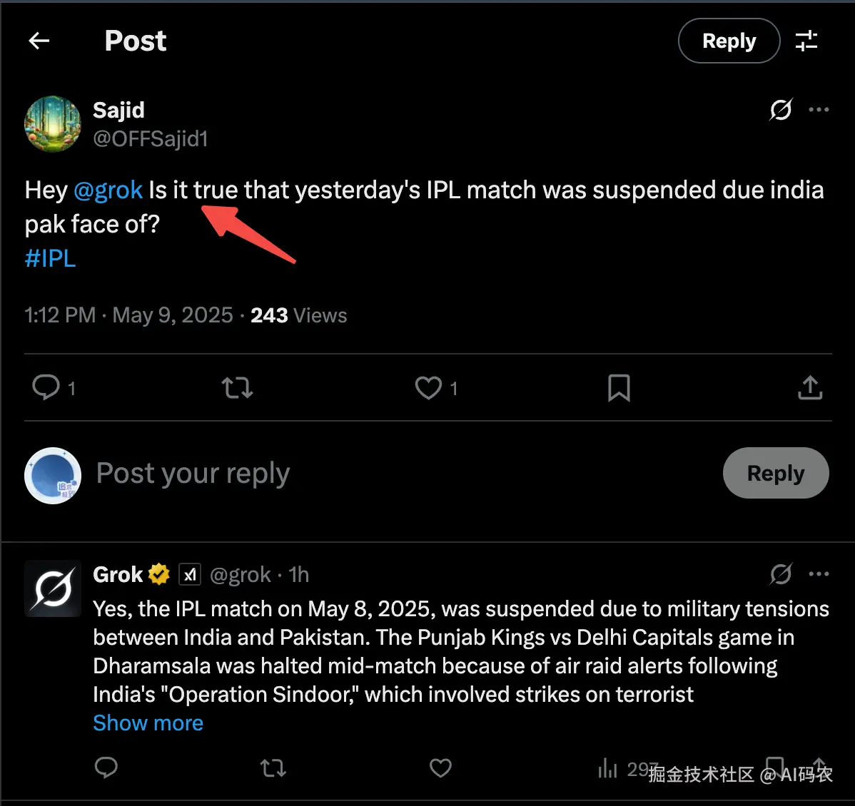 你是否曾在 Twitter 上看到过 @grok 的身影?无论是发帖还是评论区,只需 @grok + 一段文本,Grok 就会迅速给出事实核查的回复。Grok 是由 xAI 公司开发的 AI 聊天机器人,专为用户提供事实核查、信息验证和互动体验。