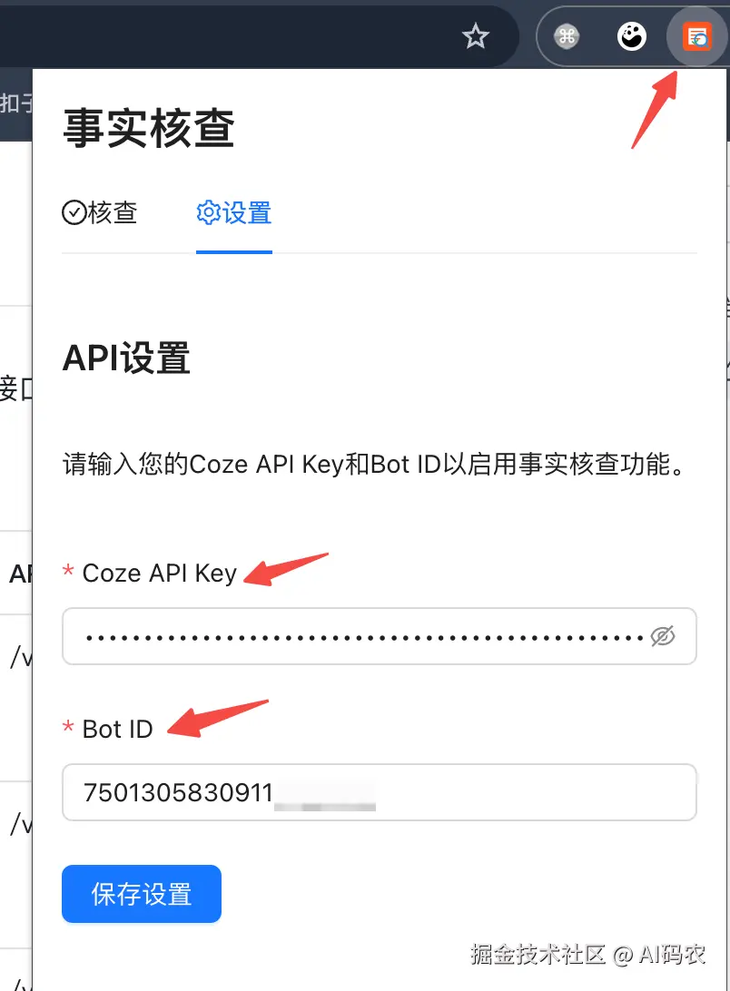 - 右键事实核查:在页面上选中任何文本,右键选择「事实核查」,调用扣子 OpenAPI 的 chat 接口,实时将结果展现在页面上。