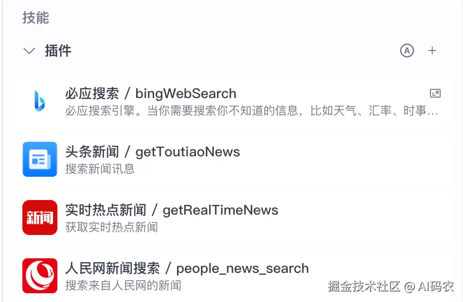 第四步,添加插件,需要从多方核查信息来源,可以添加如下几个插件,且最好在提示语中明确说明