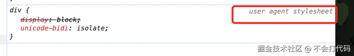 小技巧:除了浏览器的默认样式表,其他的样式表我们都能操作,平时我们可能只是操作内连的样式表,其实其他的两个样式表也可以操作通过