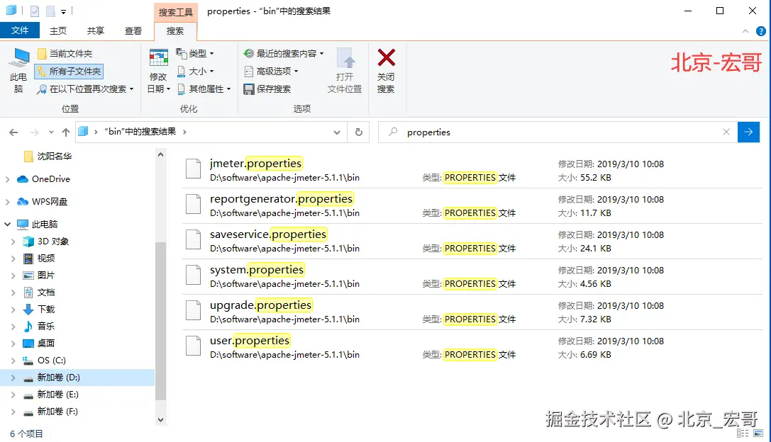 在%JMETER_HOME%\bin(or $JMETER_HOME/bin)目录下搜索框中输入:properties 会发现存在多个配置文件,如下图所示: