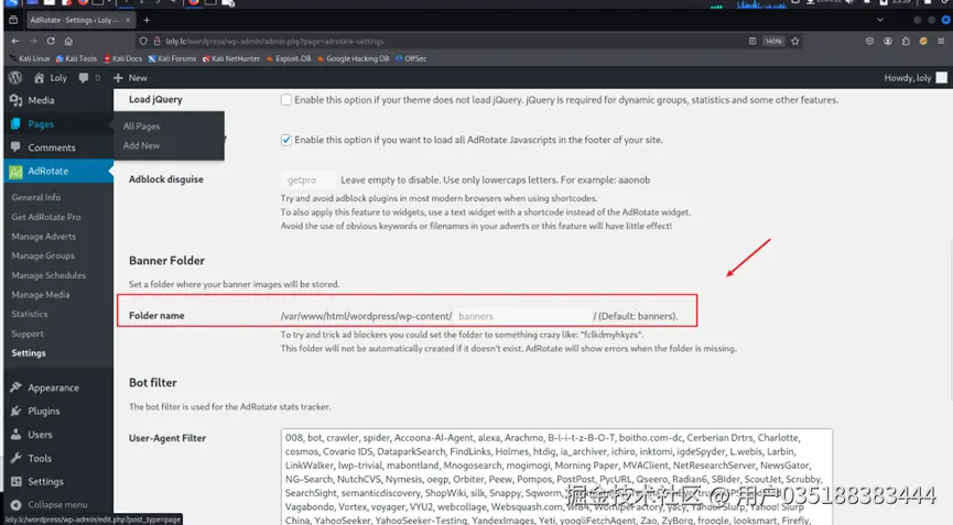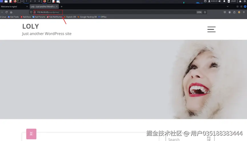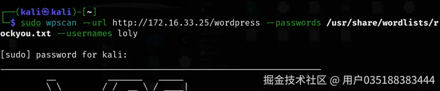 找到一个登录界面。使用wpscan扫描,看看有无结果。发现一个用户名loly: