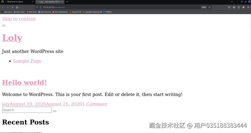 再次访问 http://172.16.33.25/wordpress/ 已经可以正常访问。
