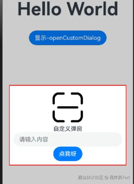 实例化后绑定按钮点击事件,点击按钮即可「召唤」这个带输入框的弹窗,效果如图: