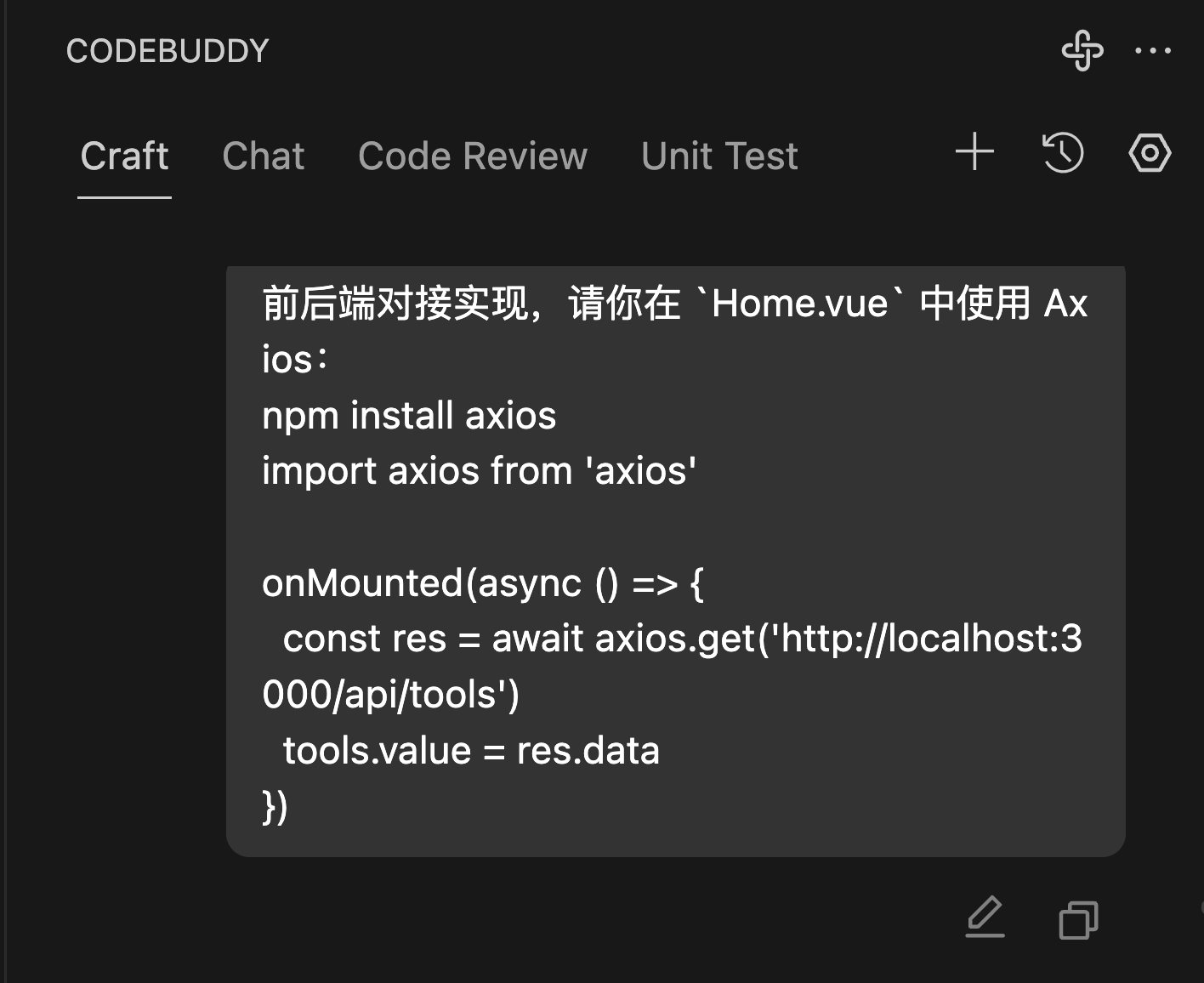 - CodeBuddy 帮我们补全陌生语法、生成组件、修复 bug