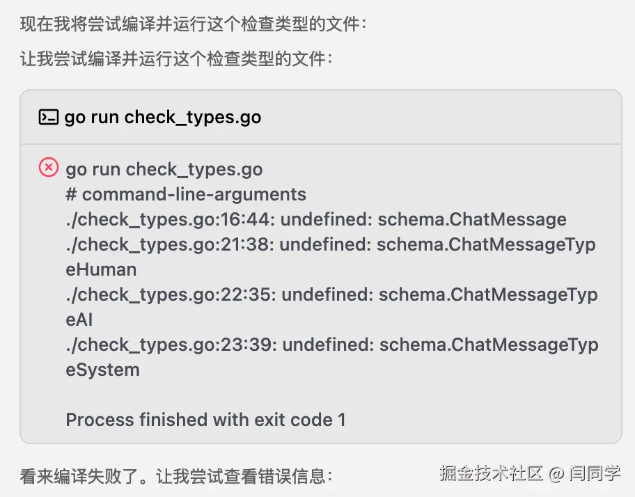 然后它并没有轻信我的话,而是真实的编译试了一下,发现果然报错了,然后就启动修复流程: