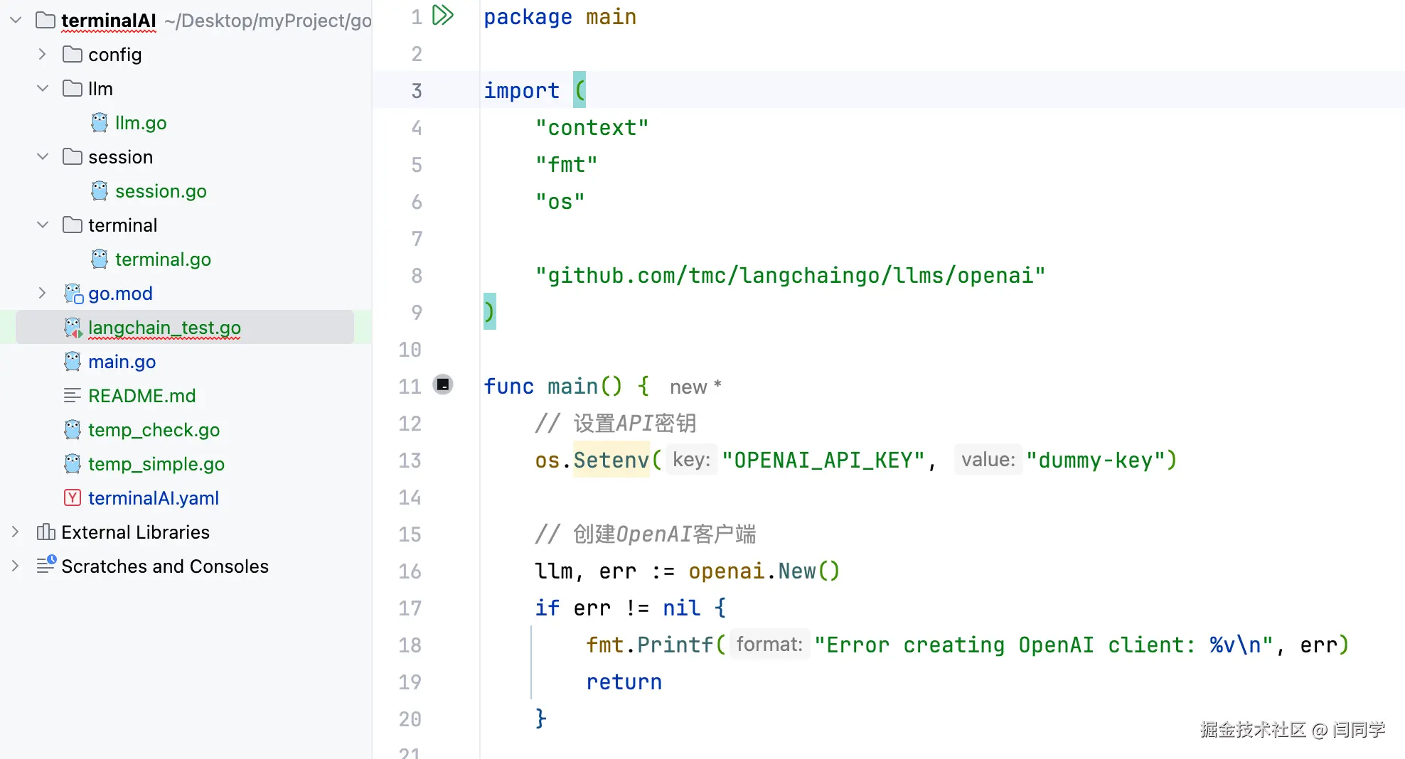 在我看代码的时候我发现CodeBuddy写出的Go代码还有比较常用的设计模式,能够将部分逻辑进行抽象,比如将与LLM交互的逻辑进行抽象: