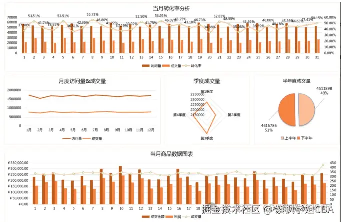 这些图表帮助运营负责人掌握销售状况,为备货计划提供数据支持。