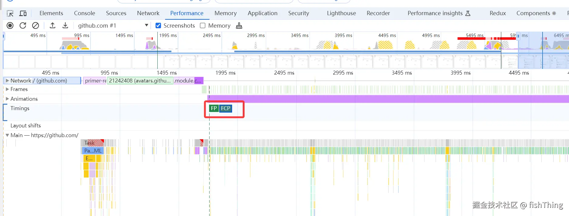 那我们先研究一下 FCP,可以直接通过浏览器 devtool 中的 Performance 直接得到具体加载数据