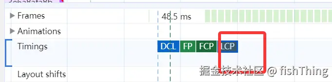 LCP 倒没有什么说的,其含义是页面最大元素,通过 performance 可以进行统计