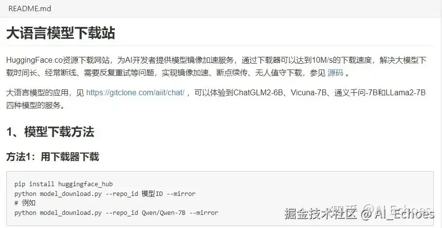 方法一:在modelscope 下载你想要的模型 - 方法二:大语言模型下载站