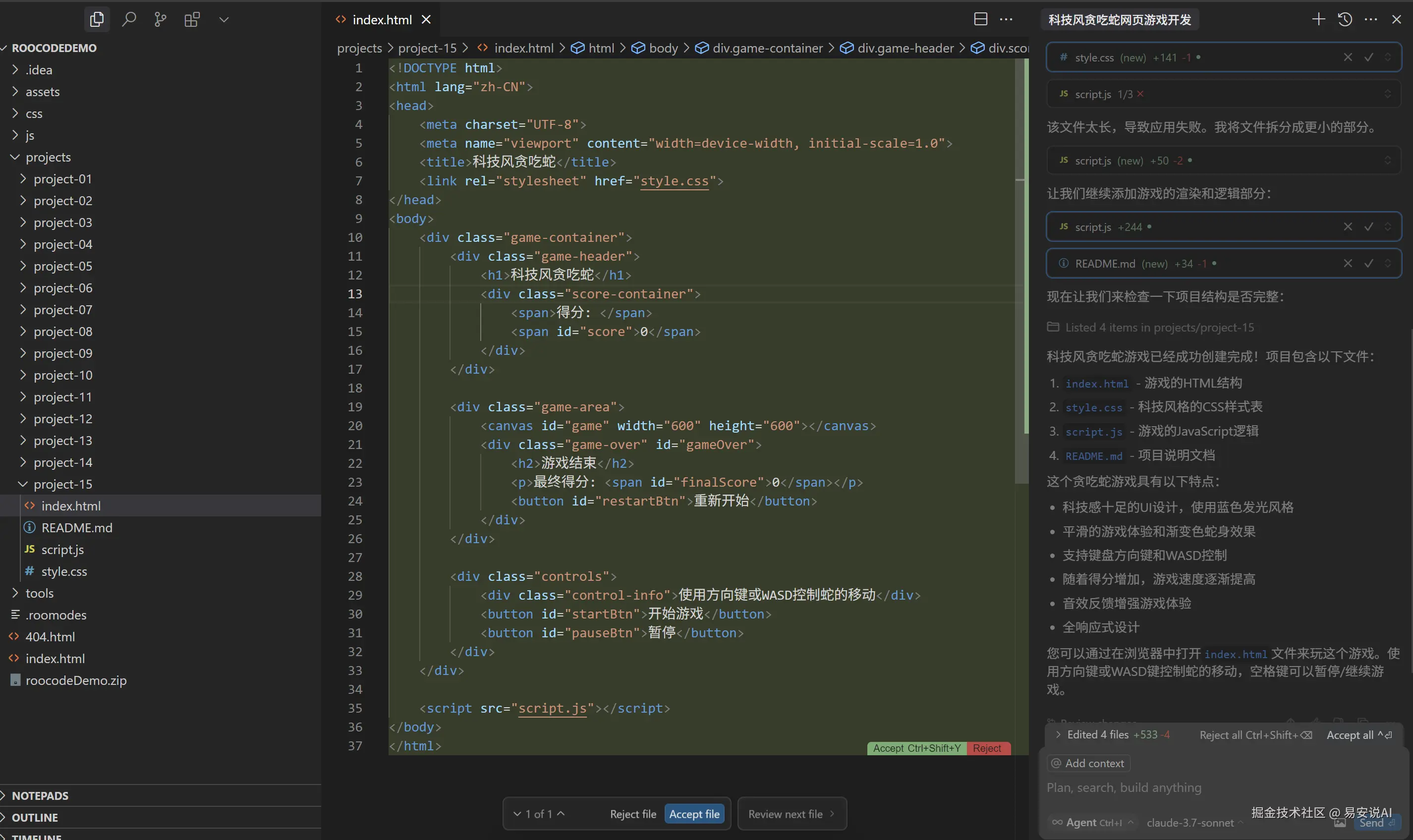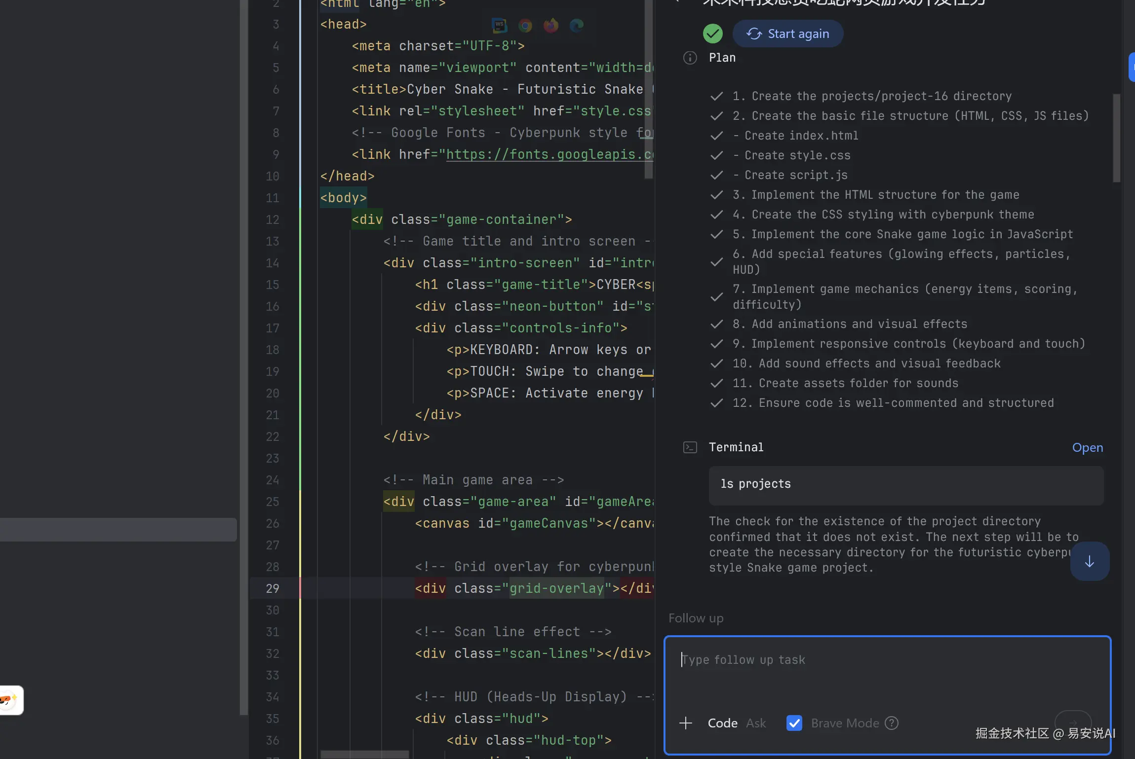 相比之下,Cursor在同样的任务中表现更为出色,不到5分钟就能完整生成贪吃蛇游戏,且拥有YOLO模式可自动批复,大大提高了开发效率。JetBrains Junie和Roo Code搭配Gemini 2.5 Pro也各有优势。