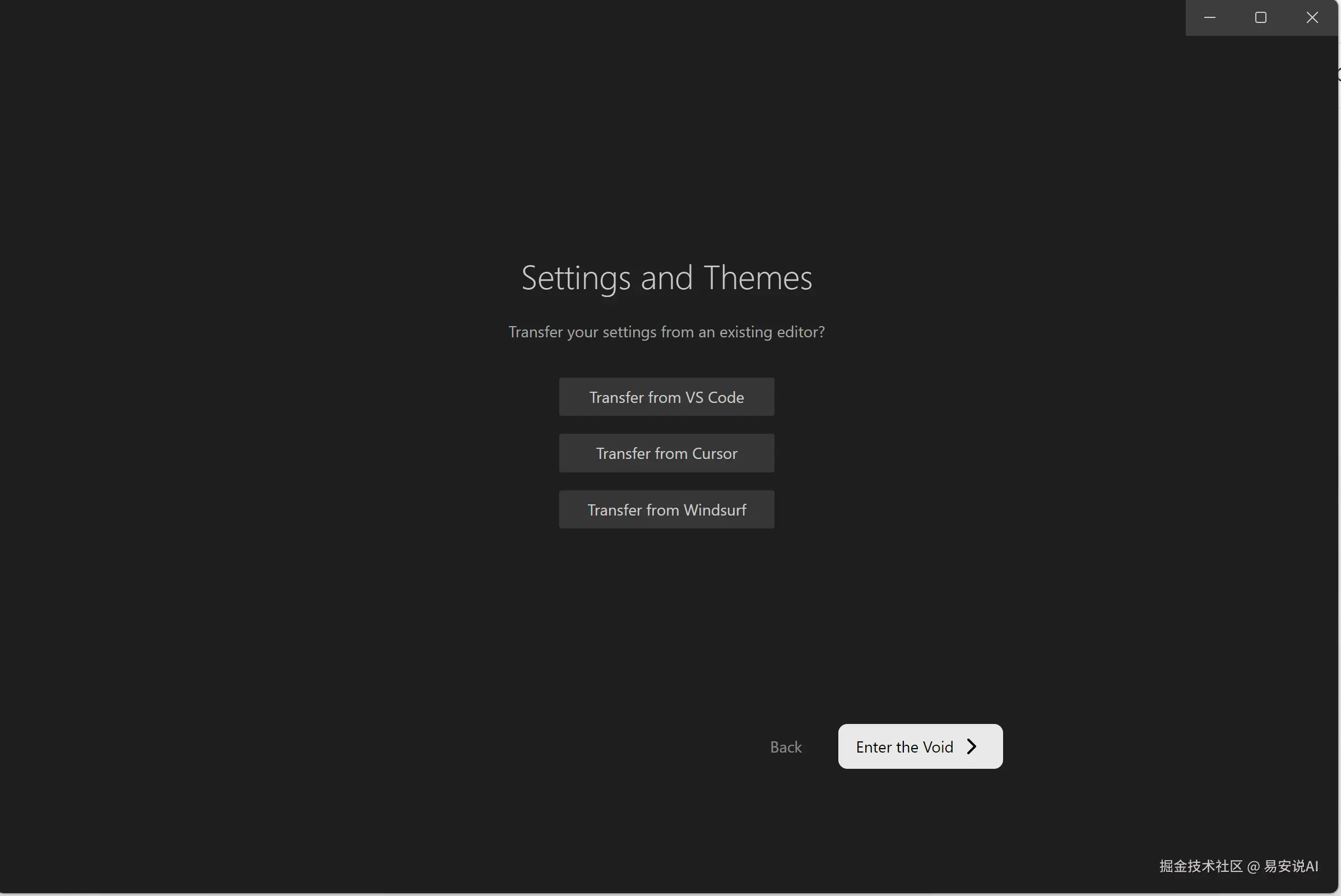 这里我选择的是从VS Code导入,点击Enter the Void