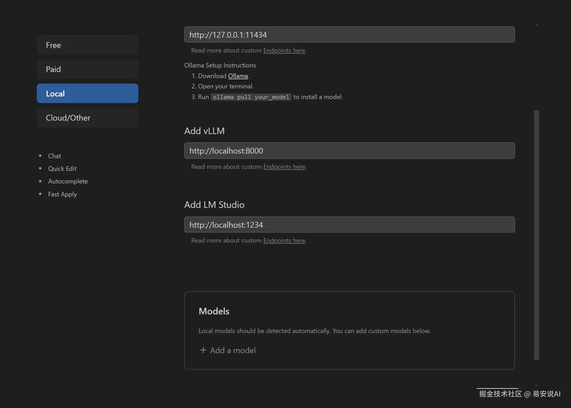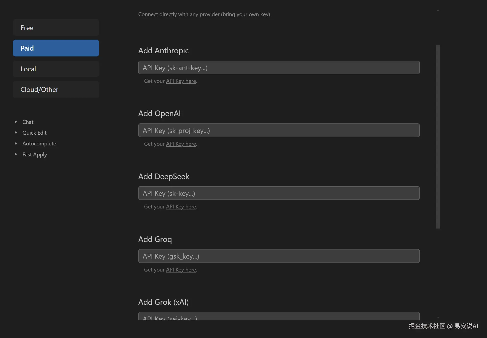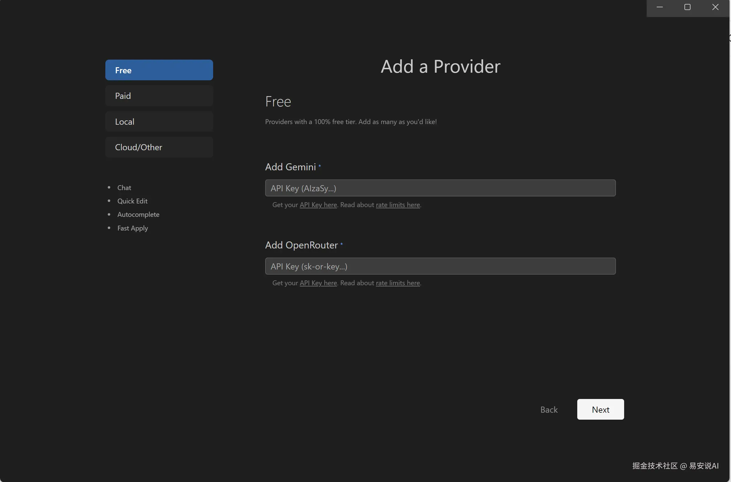 Get Started首先是模型选择,免费版,只支持Geminikey和OpenRouter一个第三方厂商,如果是自己转接了API,可以选择Cloud/Other,等下我会详细讲。