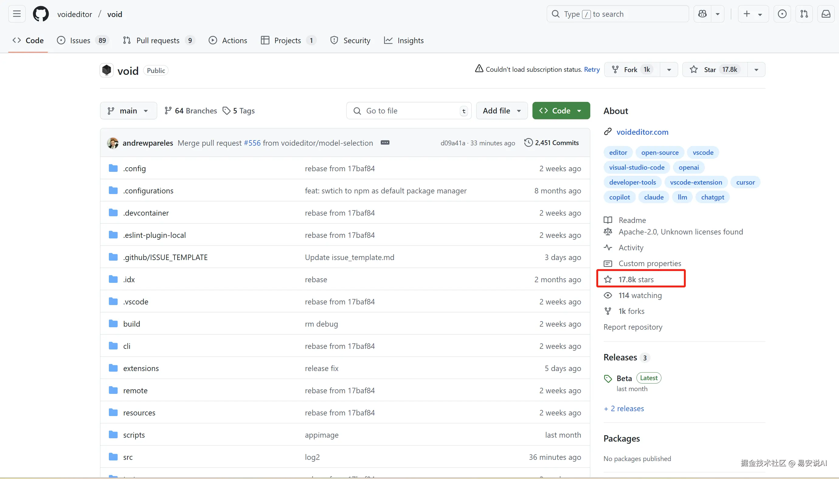 今天给大家分享一个开源AI编辑器的一手体验,已经发布很久了,据说也是从Vs Code改的,github上已经有17.8k的星了,可以看出相当受欢迎的,更新也是小时级别,非常频繁,那么究竟表现如何呢?且看我的评测。
