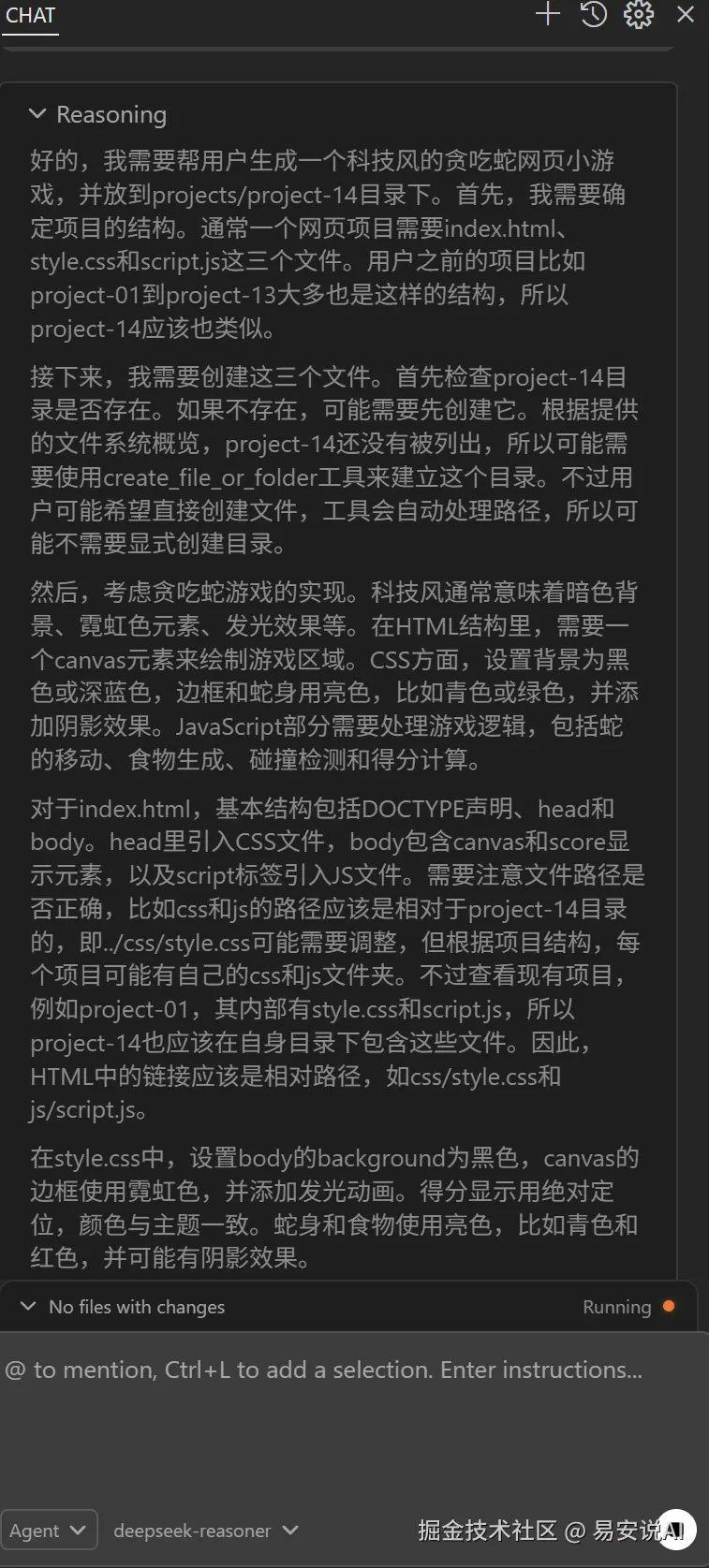 做个小游戏测验下agent模式,这里我用的DeepSeek R1原生模型