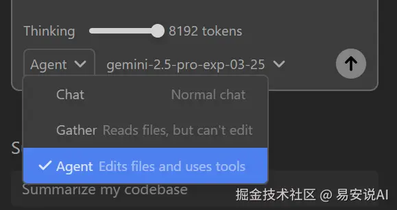 Chat和Agent都没啥可说的,这个Gather,只能读取文件,不能编辑,有点鸡肋,搞不懂这个和Chat的区别