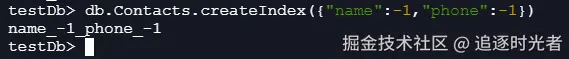 2、为Contacts集合中的name字段和phone字段同时按降序设置索引(关系型数据库中称作复合索引):
