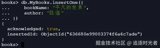 MongoDB使用insert() 方法向集合中插入一个或多个文档,语法如下: