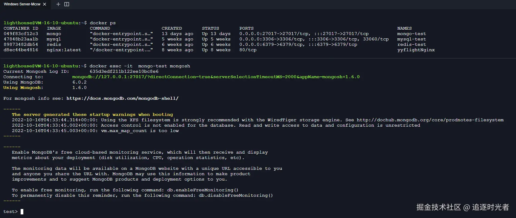 docker exec -it mongo-test mongosh -- 进入MondoDB容器中