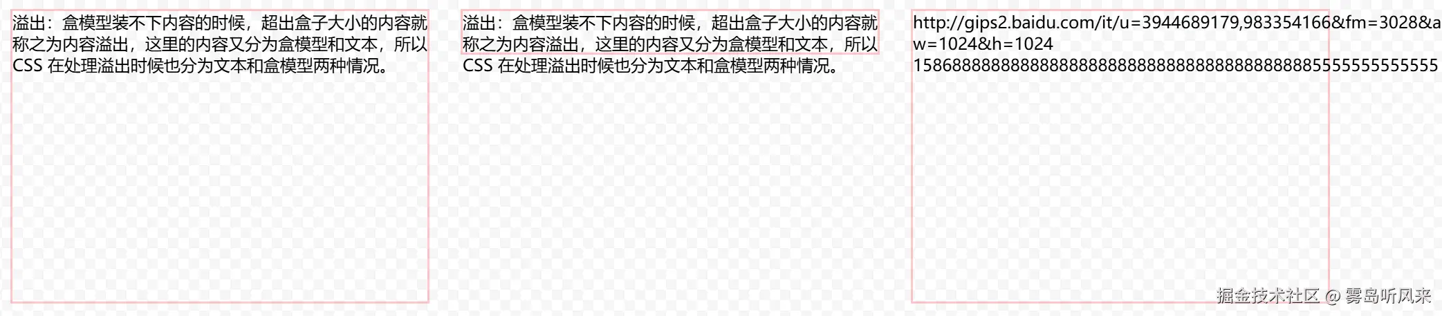 正常情况内容溢出应该换行自动撑开盒子大小,但某些情况下我们盒子大小可能是固定的,不允许自动撑开盒子大小,这种情况就需要处理溢出情况。