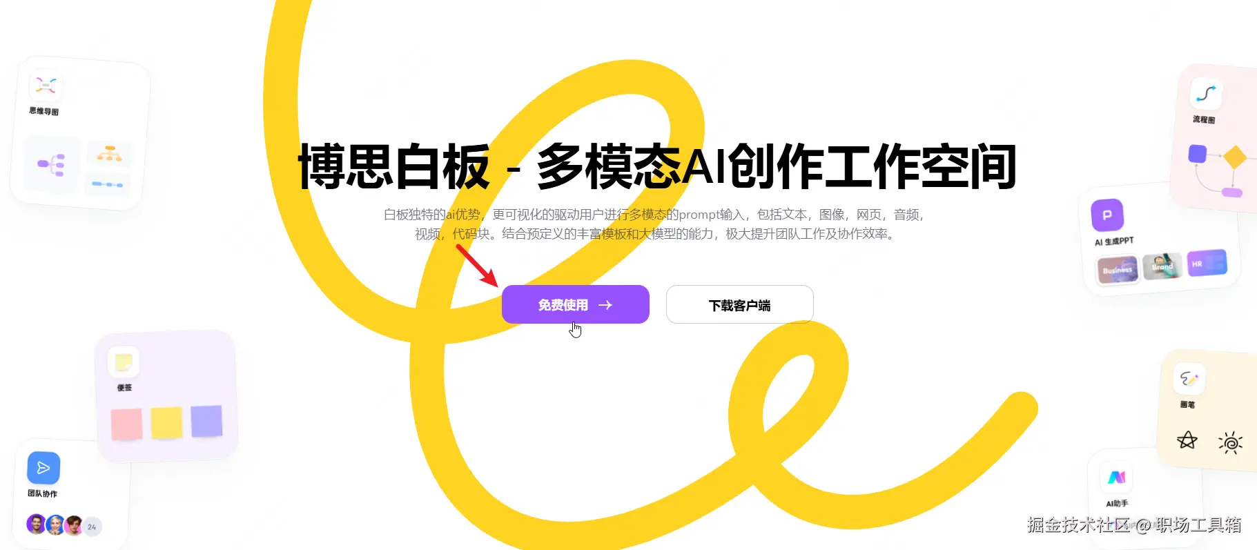 在浏览器打开boardmix AI首页,点击免费使用,进入boardmix工作台。